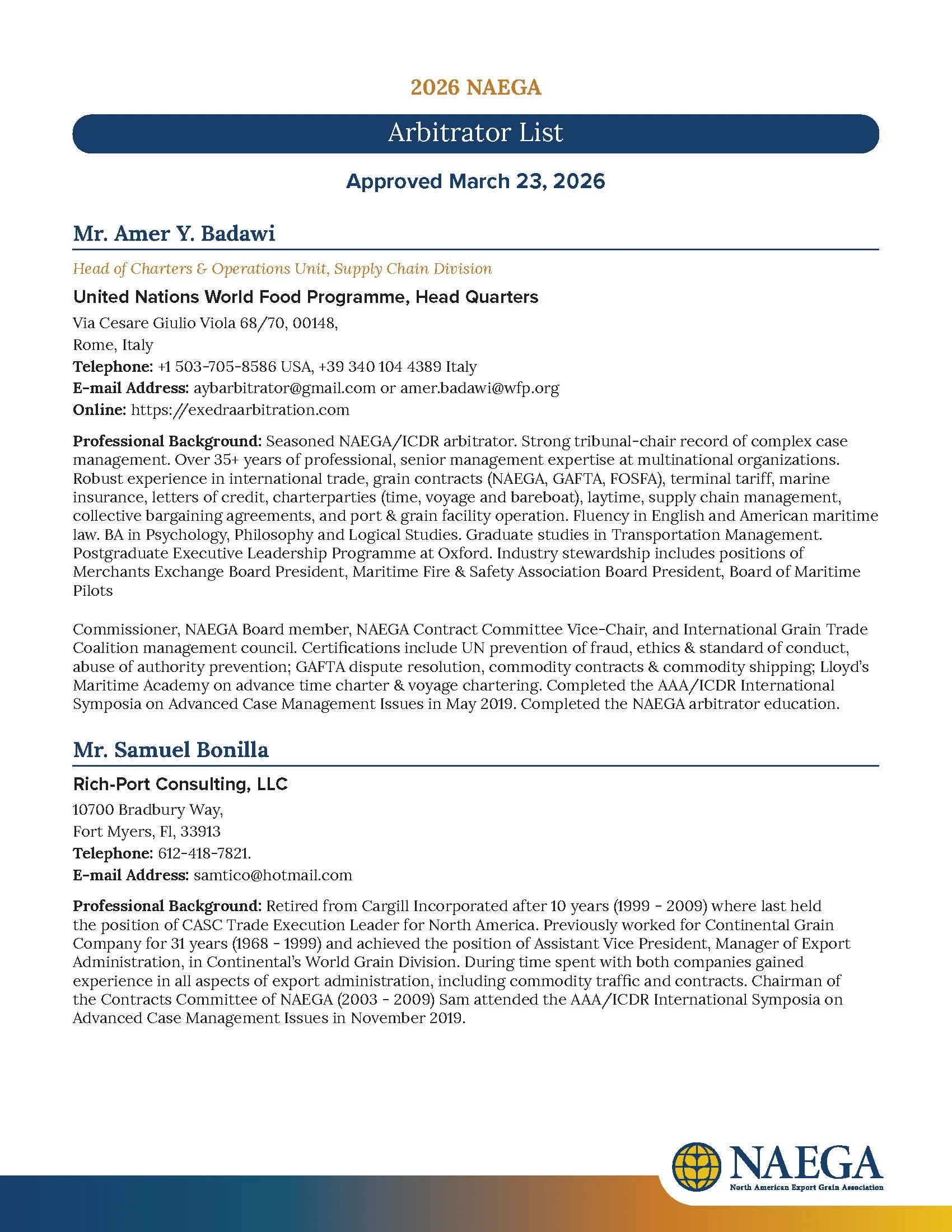 NAEGA Arbitrator List